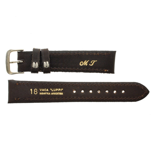 Malla para Reloj Pulsera, Cuero Luppi 18 MM Marrón Oscuro