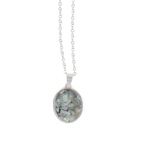 Conjunto acero blanco dije ovalado con nacar con argolla incl. 45 cm D&K