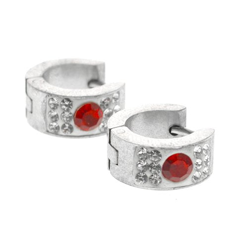 Aros cubanos acero quirurgico con cubics y piedra roja circular 9 mm D&K / 200CU-65