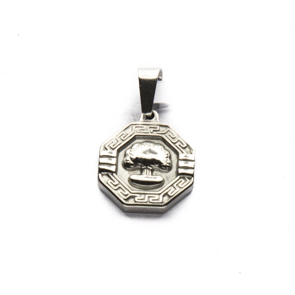 Dije Medalla Arbol De La Vida Octágono Con Guarda de Acero Quirúrgico 316L. Alt: 2,4 cm Incl. Argolla. / 500AV-3