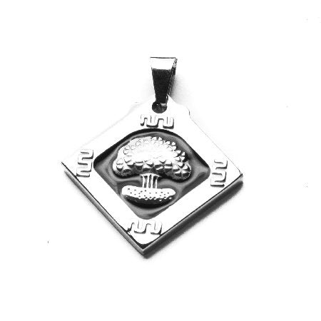 Dije Rombo D&K Arbol De La Vida Con Esmaltado Negro de Acero Quirúrgico 316L. Alt: 4 cm Incl. Argolla. / 500AV-81
