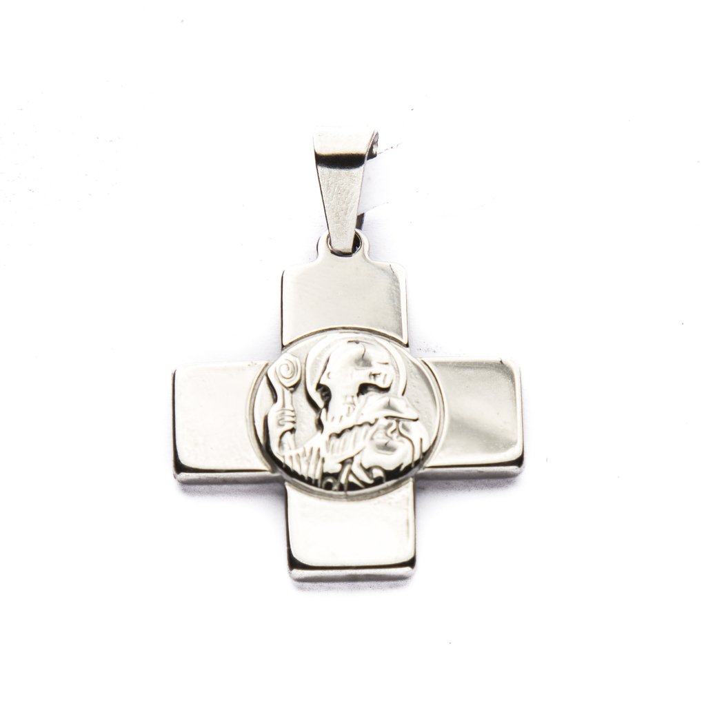 Dije Cruz D&K San Benito de Acero Quirúrgico 316L. Alt: 4 cm incl. Argolla. / 500RE-29