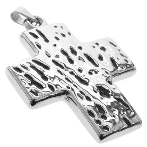 Dije de acero quirurgico cruz inflada facetada con esmaltado negro de 6.9 cm Alt. Incl. Argolla. D&K