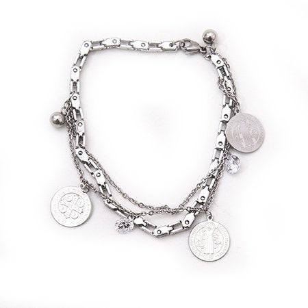 Pulsera doble con dijes San Benito y dijes de piedra D&K / 600RE-143