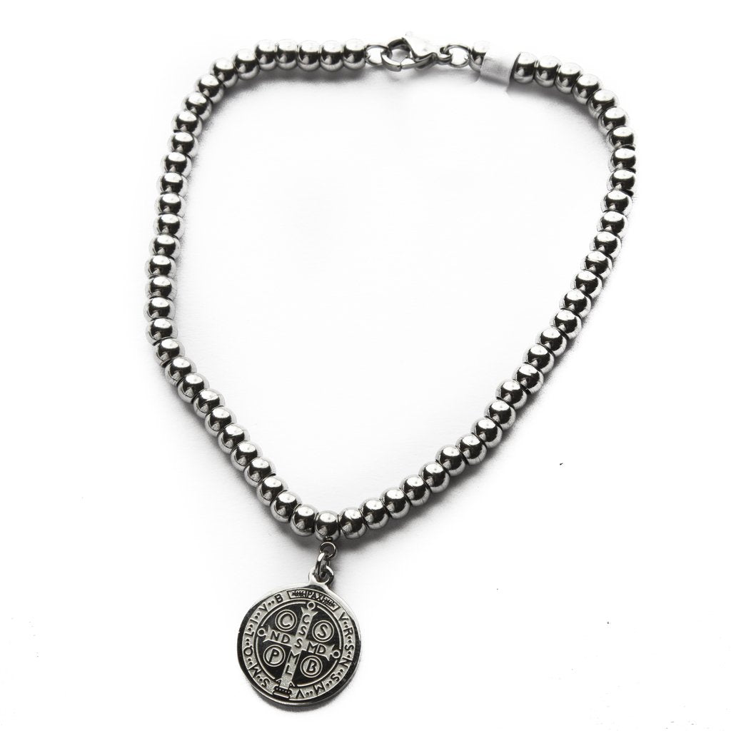 Pulsera Pelotitas Con Medalla San Benito / 600RE-18