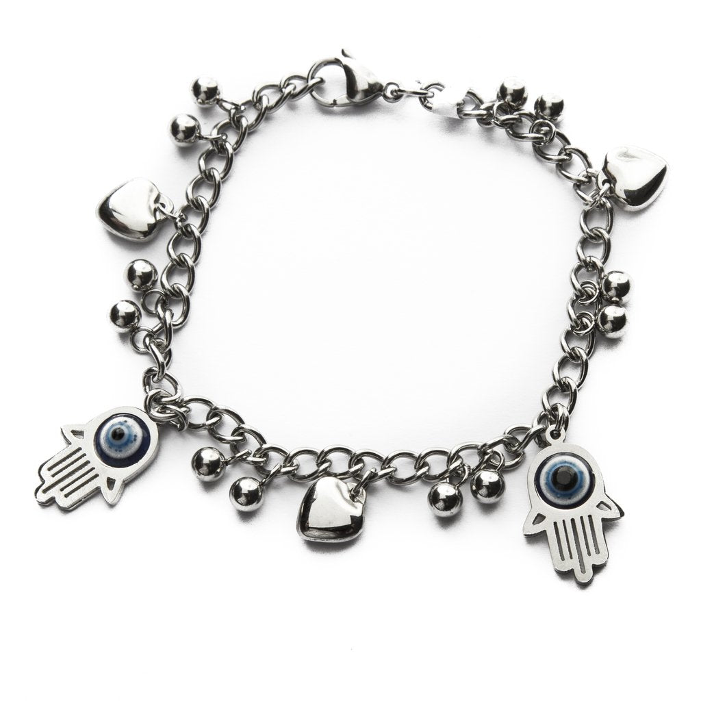 Pulsera Figaro Con Mano De Fatima, Pelotitas Y Corazónes / 600RE-4