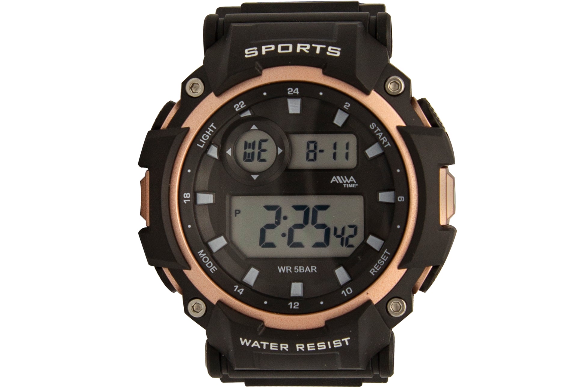 Reloj Digital Crono Alarma, Caballero, AIWA Time, Sumergible 5 ATM