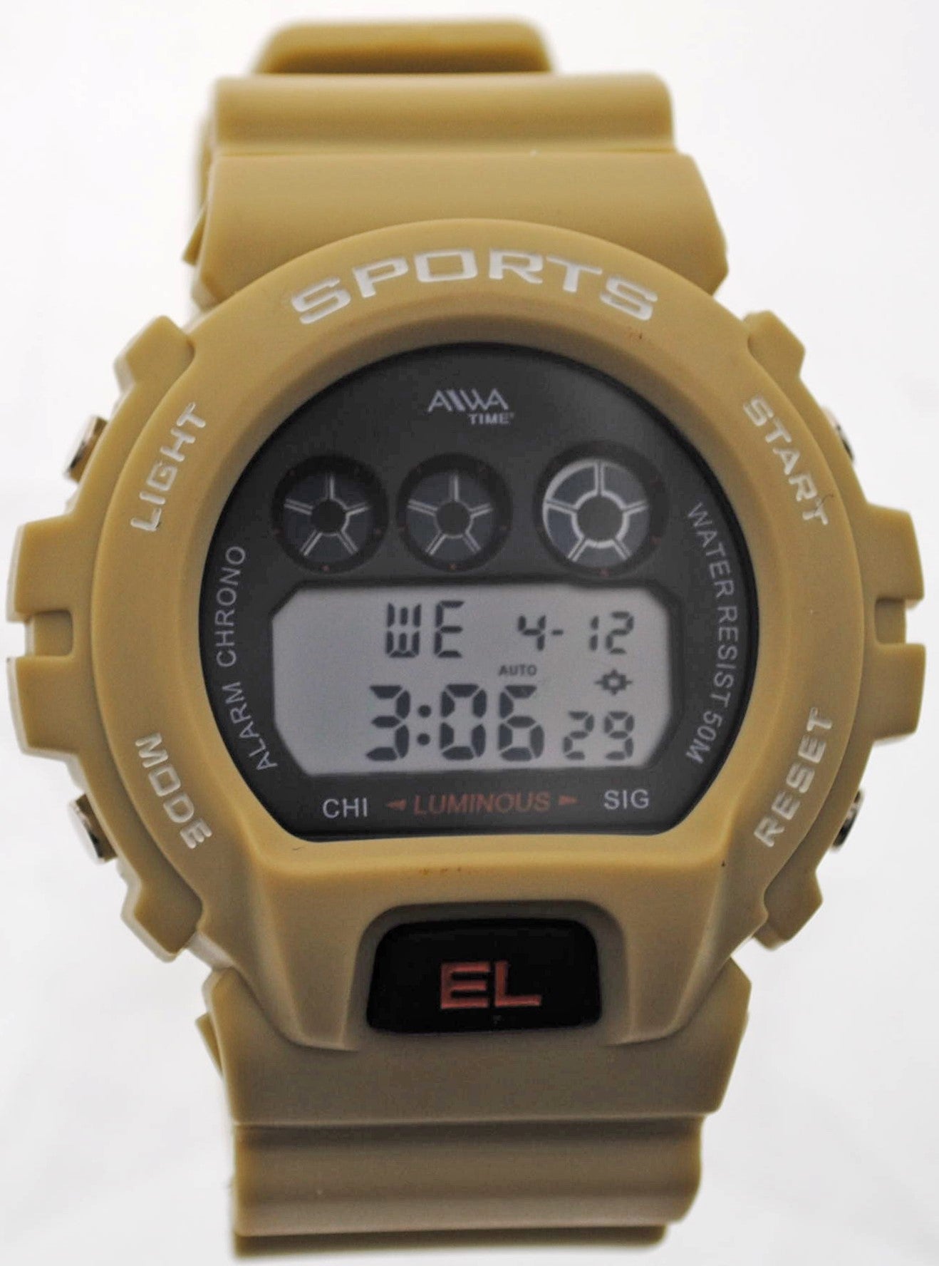 Reloj Digital Crono Alarma, Caballero, AIWA Time, Sumergible 5 ATM