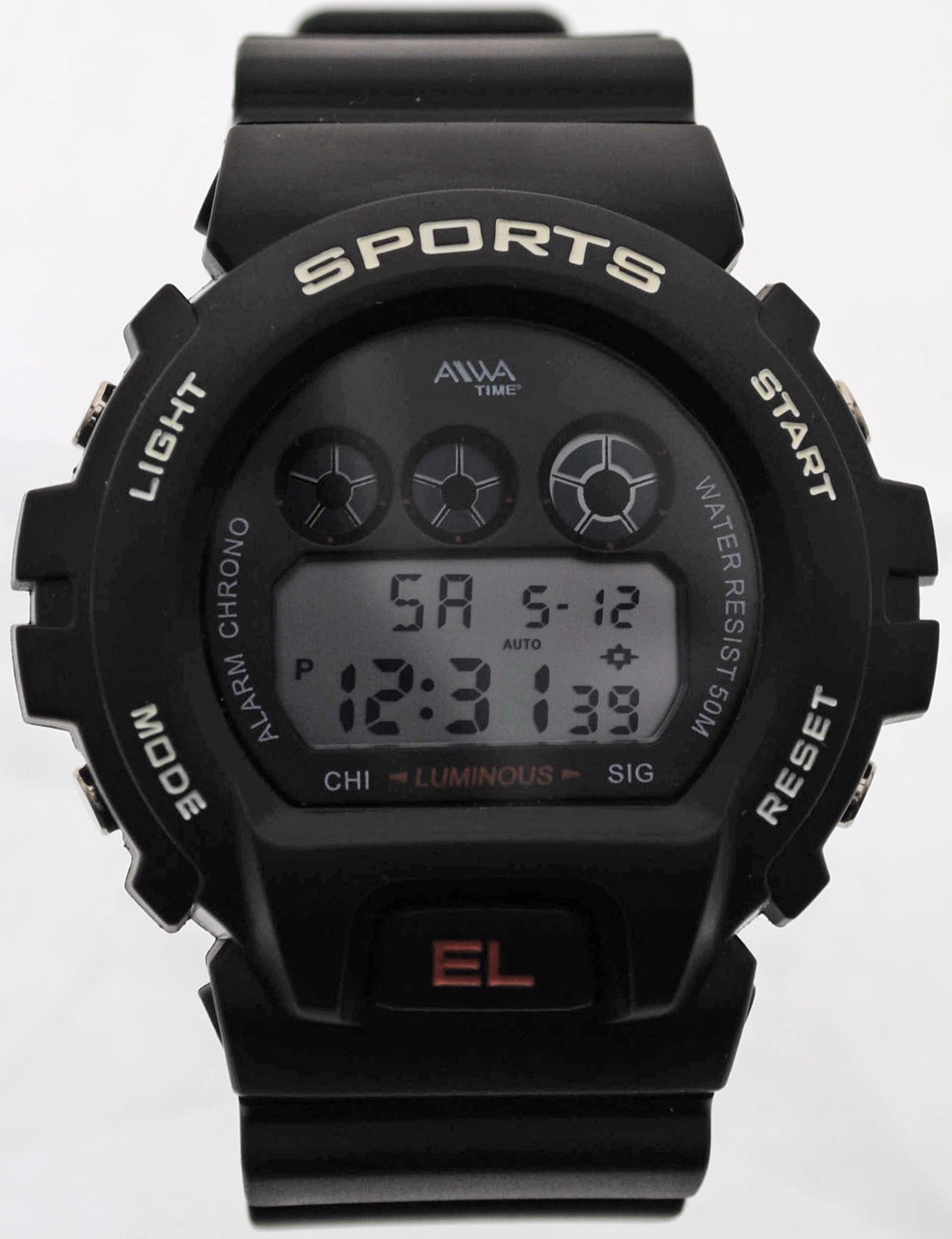 Reloj Digital Crono Alarma, Caballero, AIWA Time, Sumergible 5 ATM