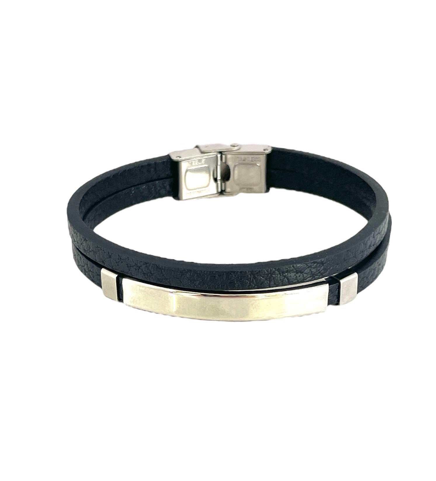 Pulsera cuero y acero quirurgico mod 065