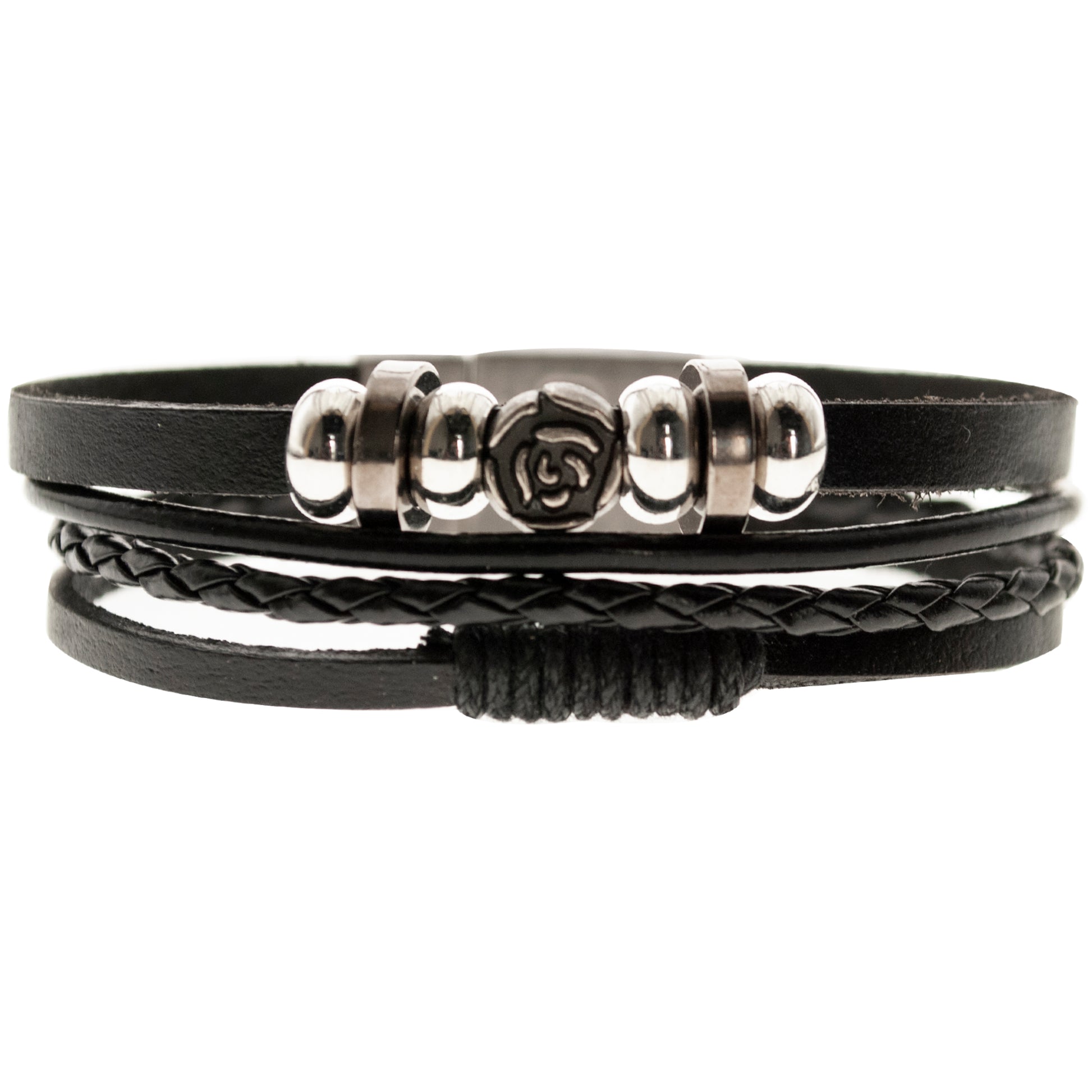 Pulsera negra cuero eco y Alloy Mod 01