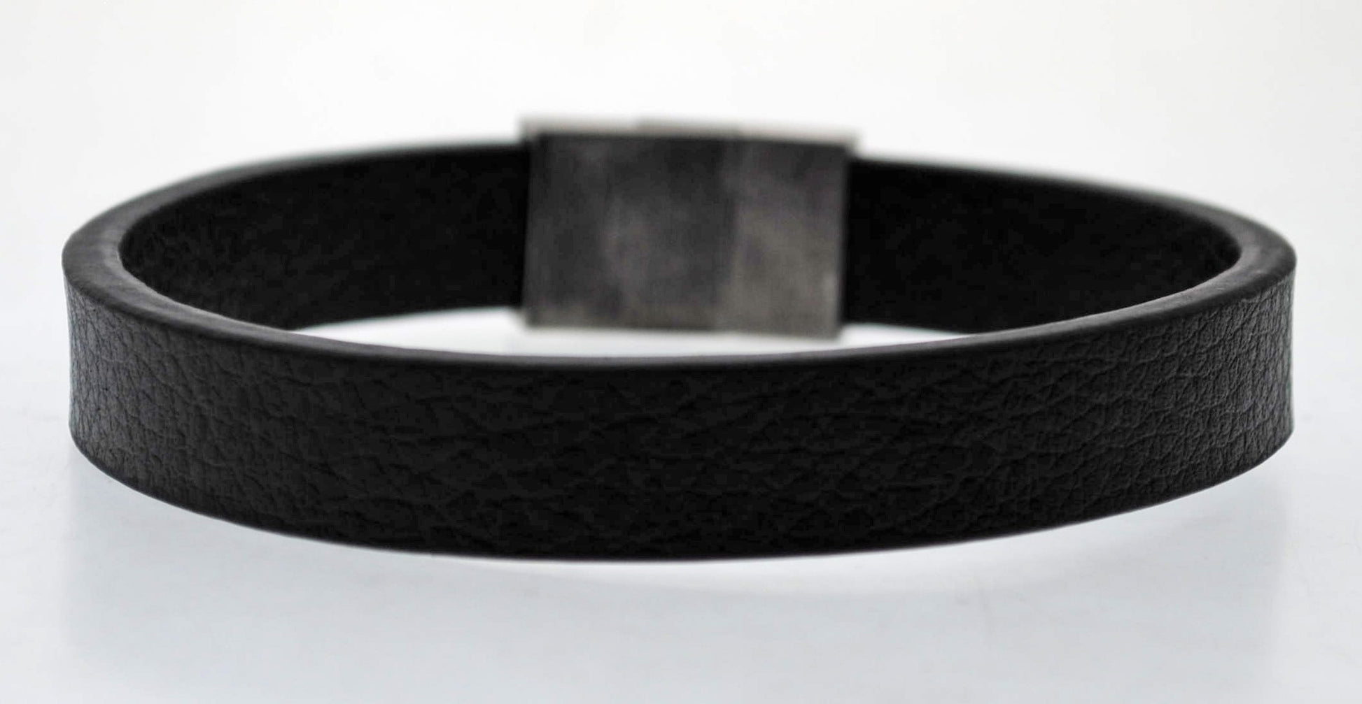Pulsera negra cuero y acero quirurgico Mod 27